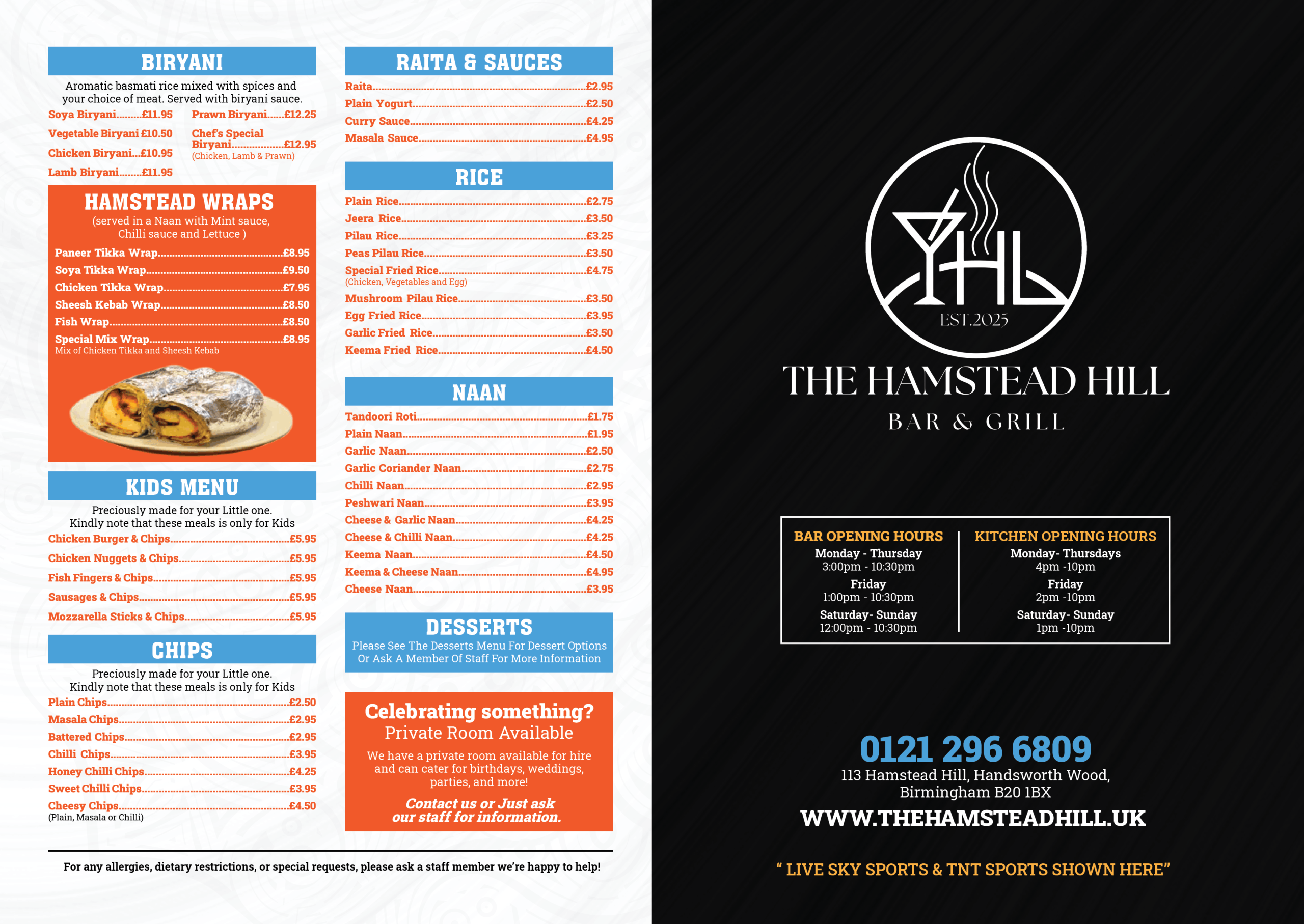 The Hamstead Hill Menu