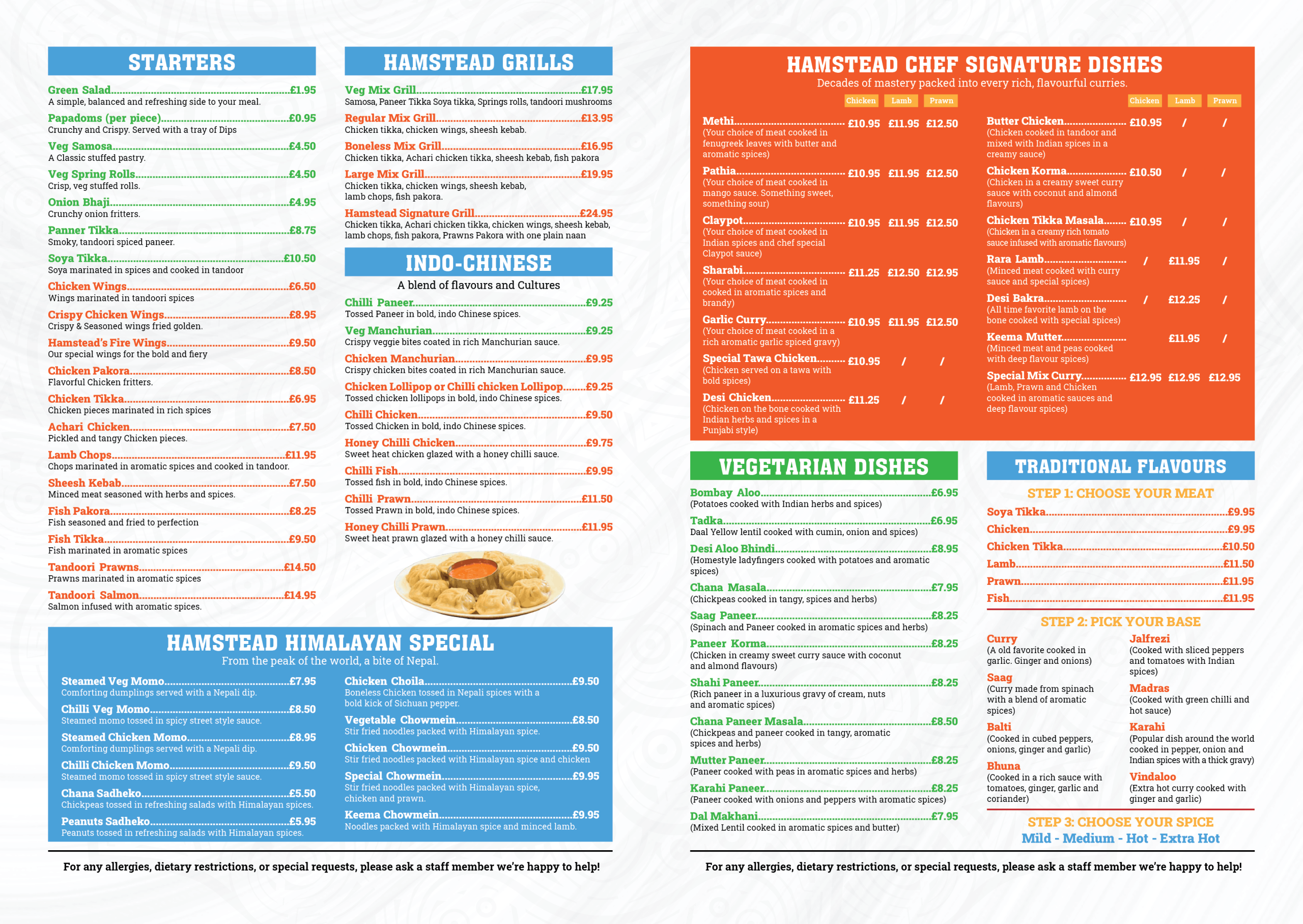 For any allergies, dietary restrictions, or special requests, please ask a staff member — we're happy to help!